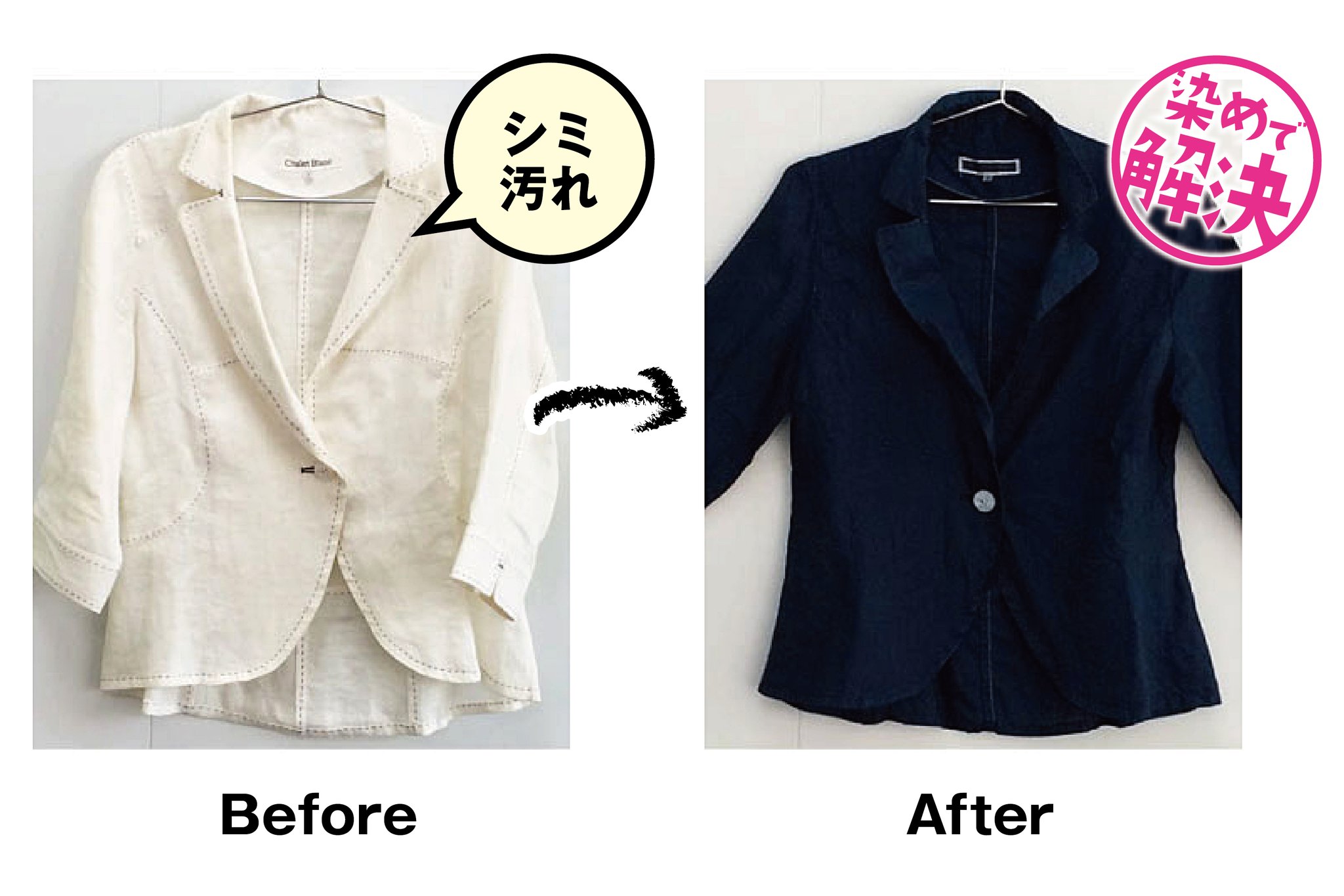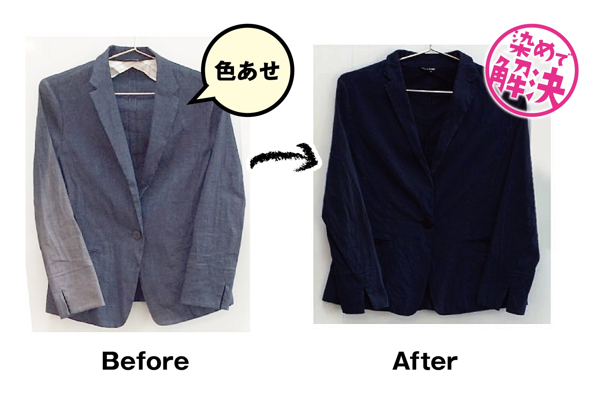 この度、お洋服のトラブル(色あせ・汚れ・黄ばみ・色落ちなど)を新たな色に染め替え・染め直して