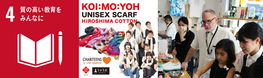 他にも地元の高校、専門学校ともコラボでチャリティー要素を含んだ染めのカリキュラムを行っています。