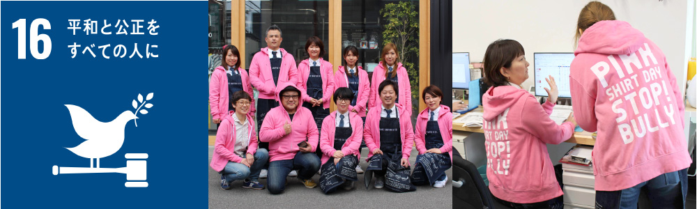 ピンクシャツで「平和と公正を」