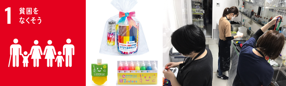 岩瀬商店が販売するオリジナル染めグッズの「タイダイ染めカップ」・「布用絵の具 かけるくん!」は地元の就労継続支援施設いわゆる作業所さんに作成していただいています。「色」で仕事をつくることは出来ませんか?」そんな問いかけがオリジナル染めグッズをつくりだすキッカケになりました。今ではオリジナル染めグッズはわが社に欠かせない大事な商品です。作業所さんいつも世の中を明るく楽しく彩ってくださってありがとうございます。